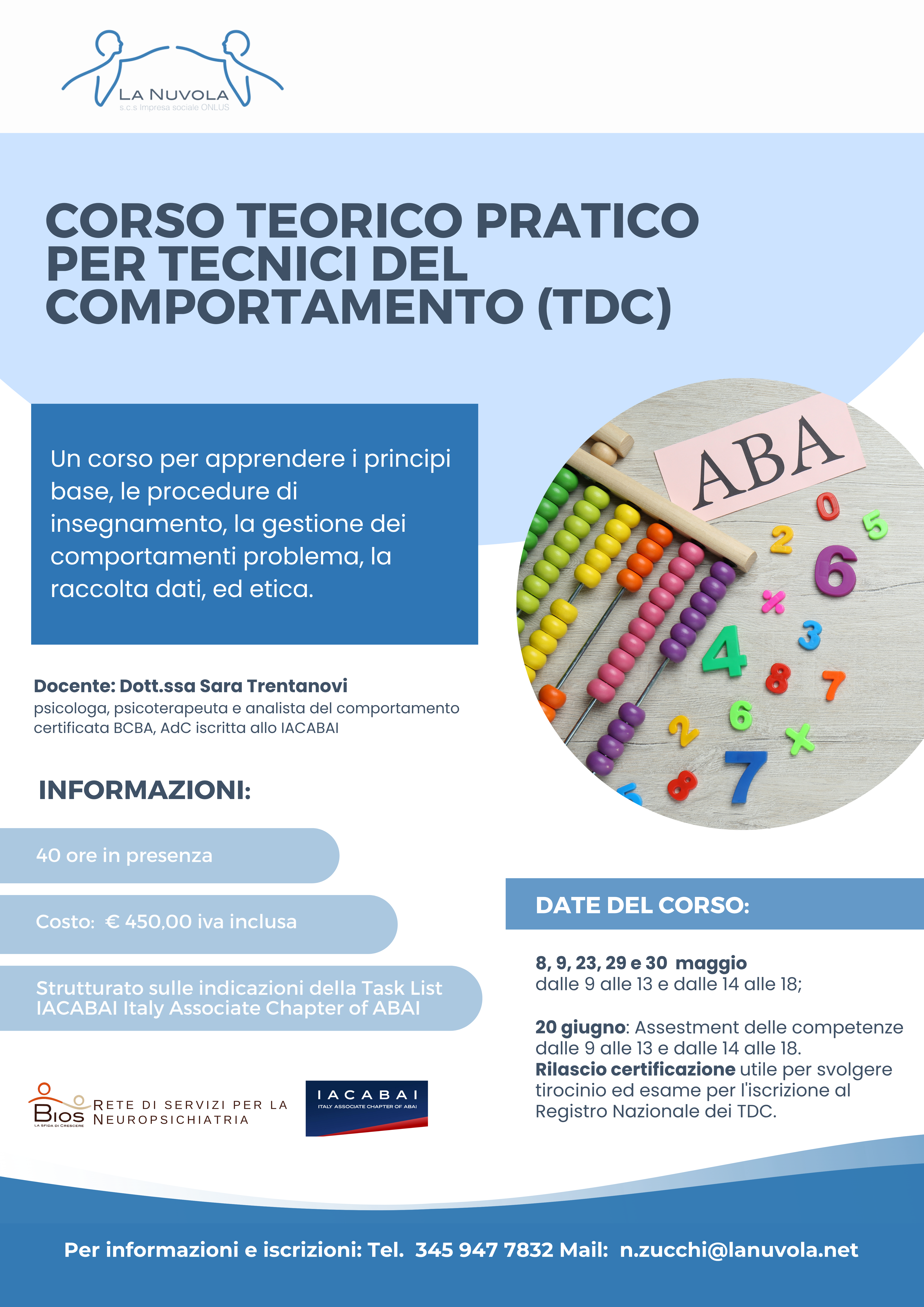 Il corso affronta i principi di base, le procedure di insegnamento, la gestione dei comportamenti problema e la raccolta dati, in linea con gli standard internazionali di riferimento .